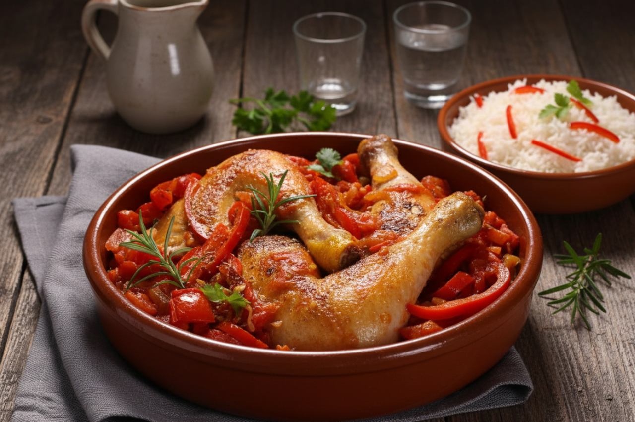 Plat populaire et généreux, le poulet basquaise fait partie des grandes spécialités familiales du Pays Basque. Il est cuisiné dans une sauce basquaise proche de la piperade, mijotée lentement pour concentrer les saveurs.